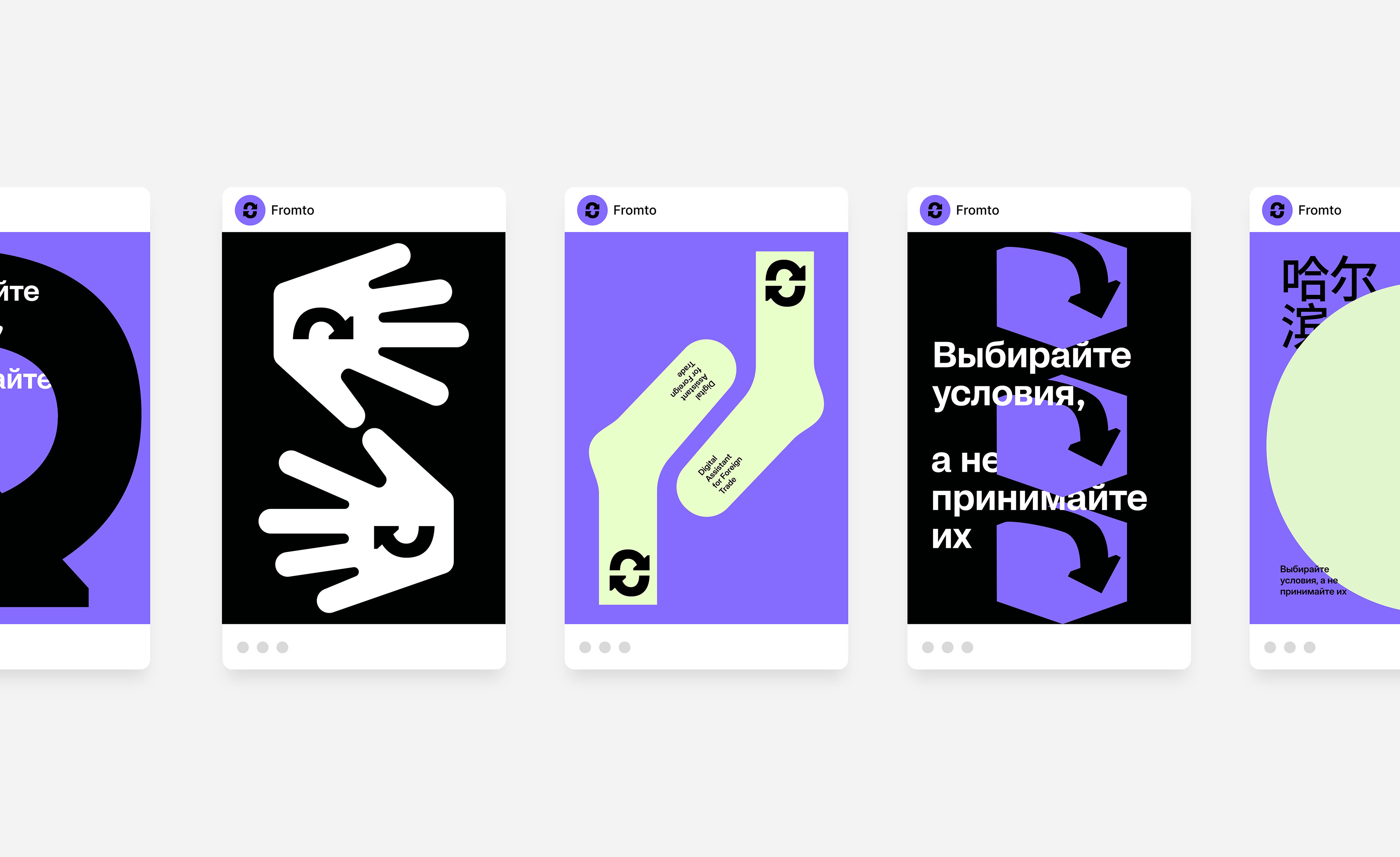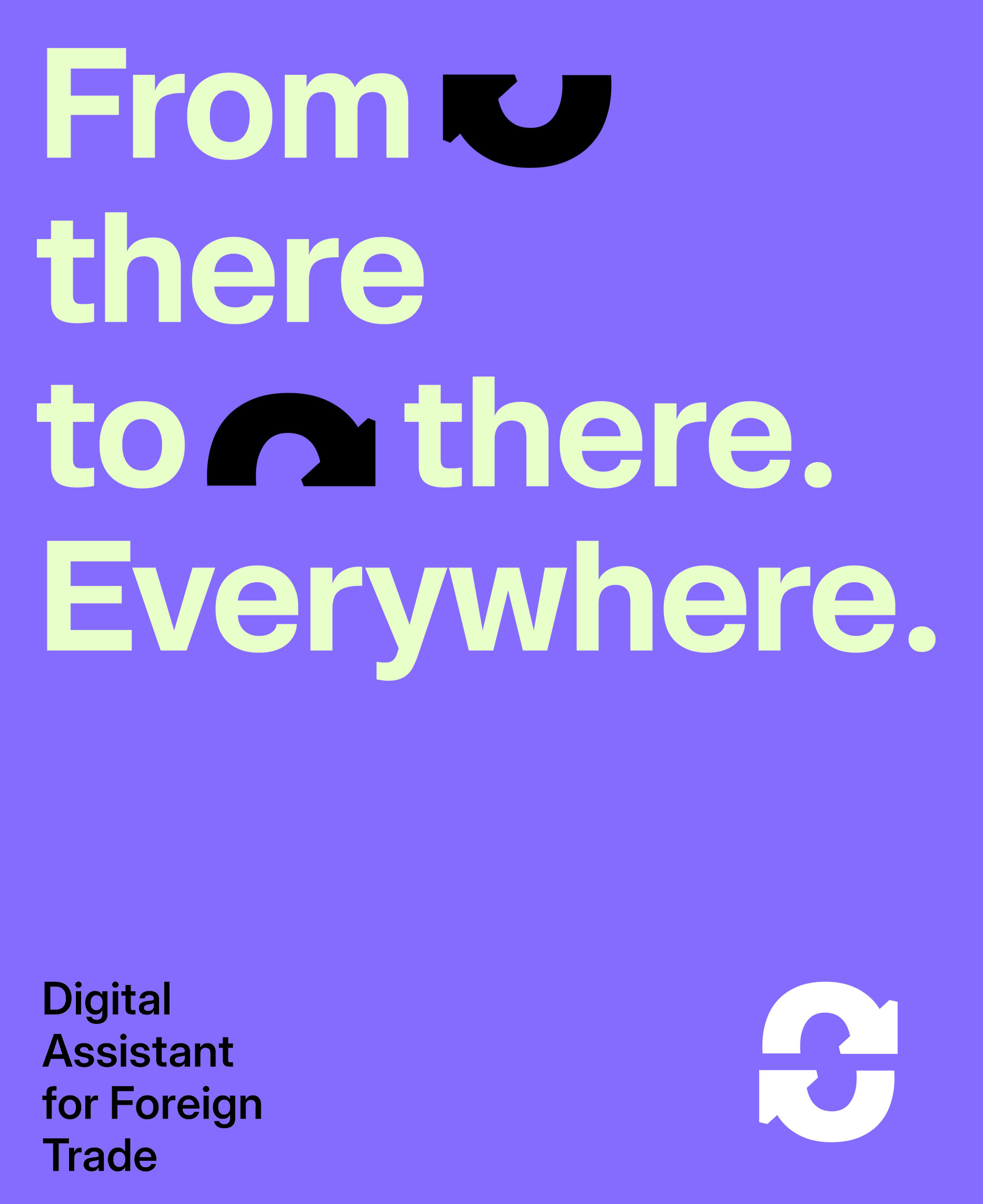 Стрелка из символа становится главным героем новой айдентики. Оттуда, дотуда, просто через приложение в один клик. ВЭД – это действительно легко, легко визуально и нативно.