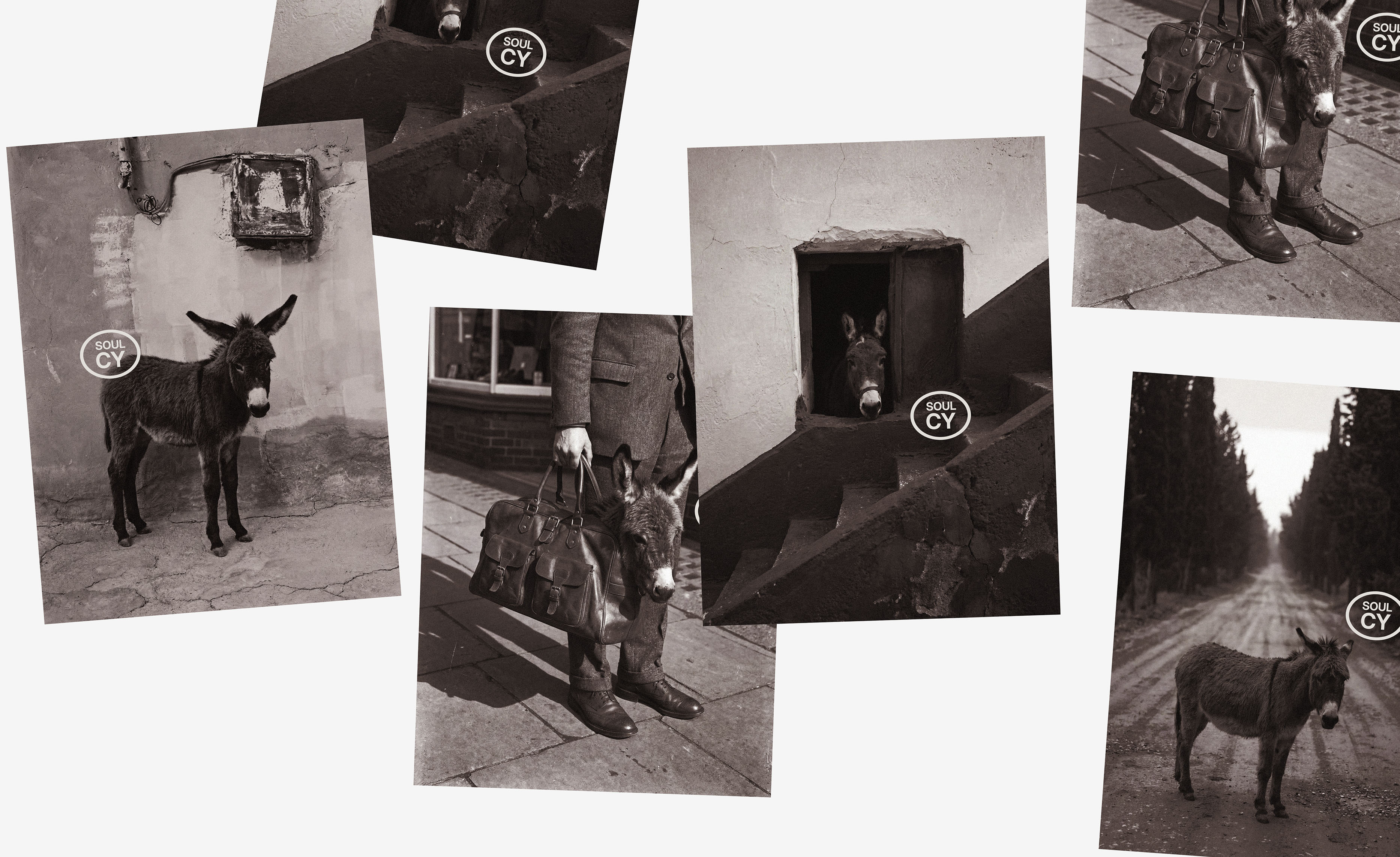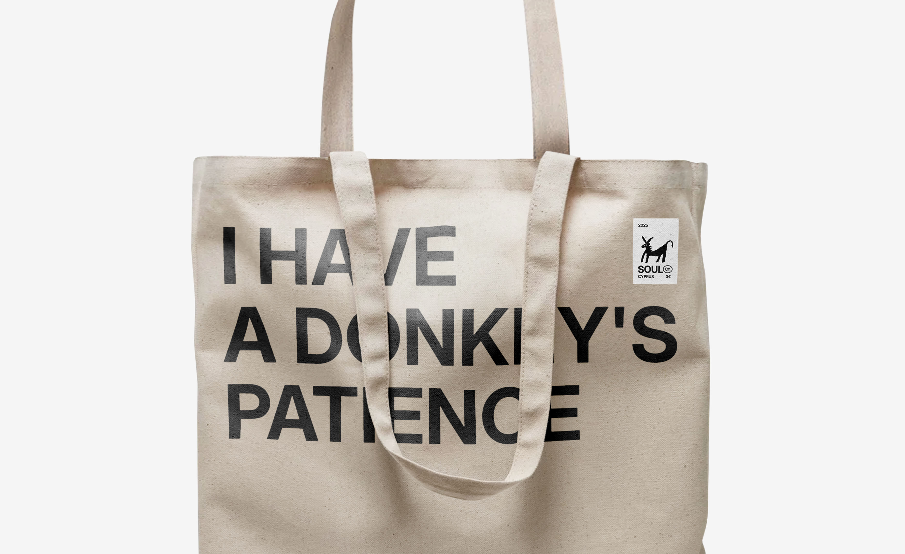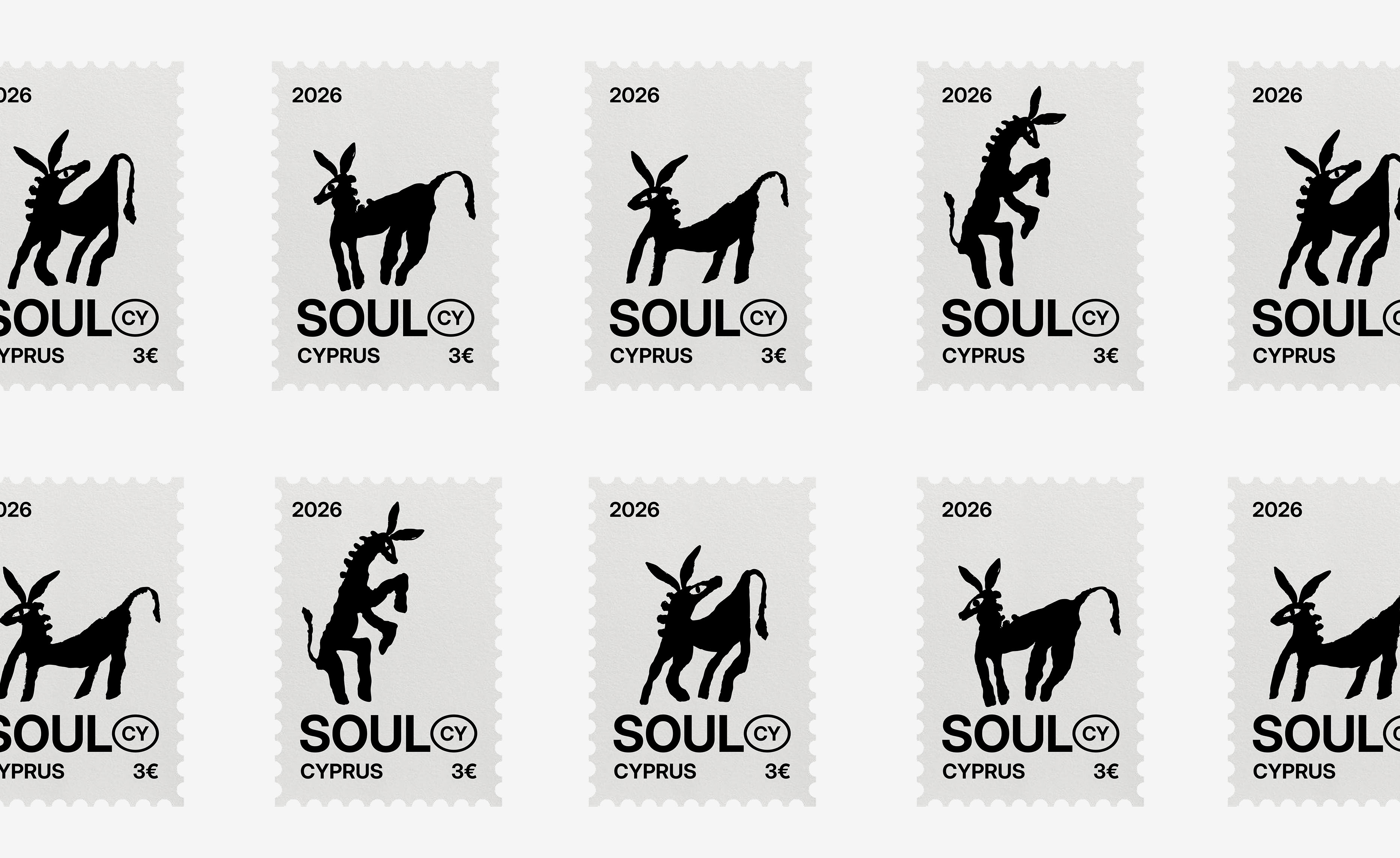 Название бренда SOUL CY — «Душа Кипра» — набирается простым гротеском. Название региона заключается в овал, отсылая, с одной стороны, к классическим региональным наклейкам, а с другой — к копытцу ослика.